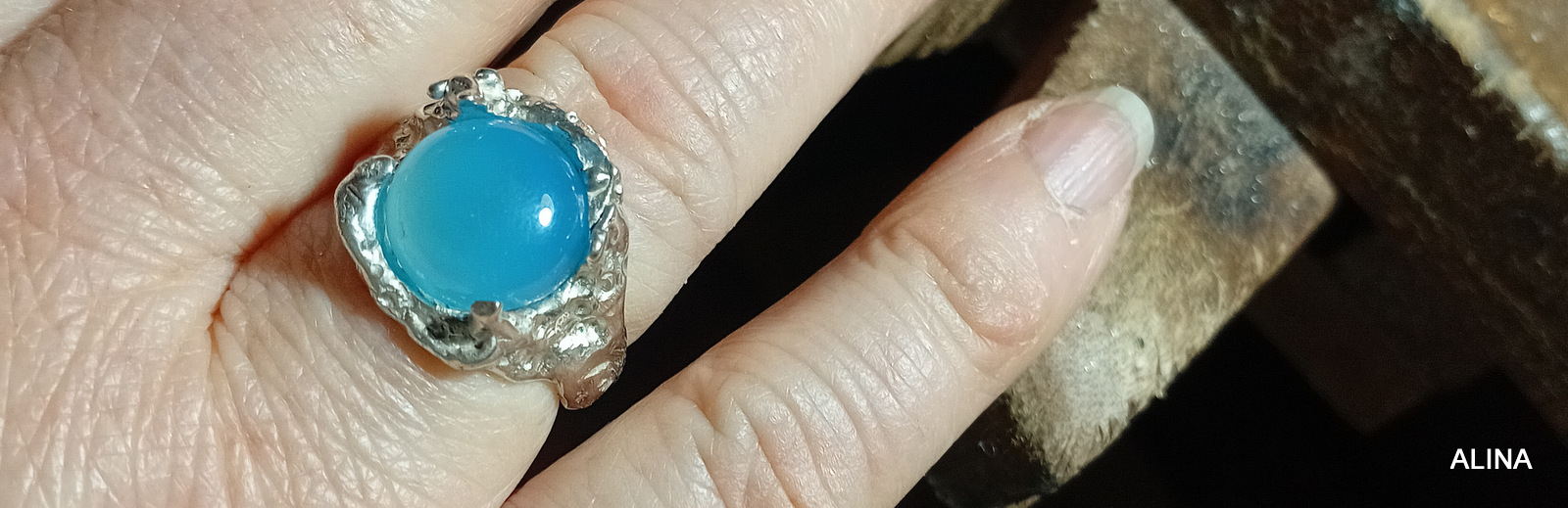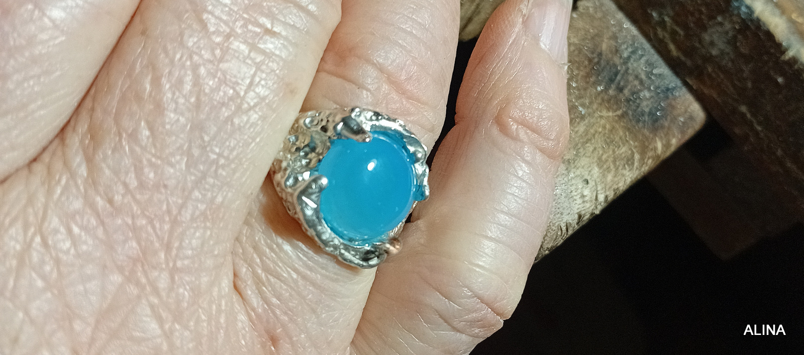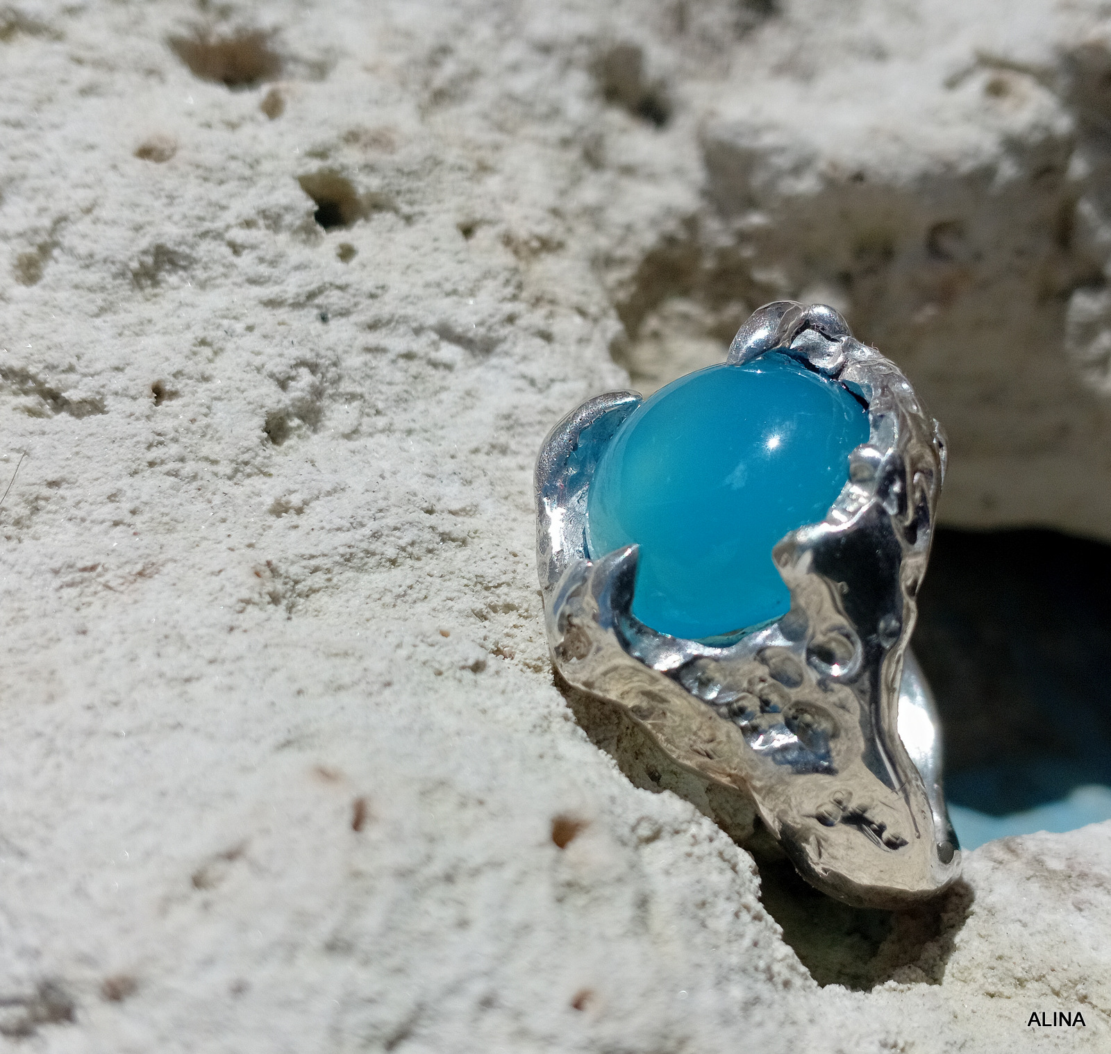 Etiquetas: ágata azul, cera perdida, con certificado de autenticidad, numero 17, pieza única, plata 925