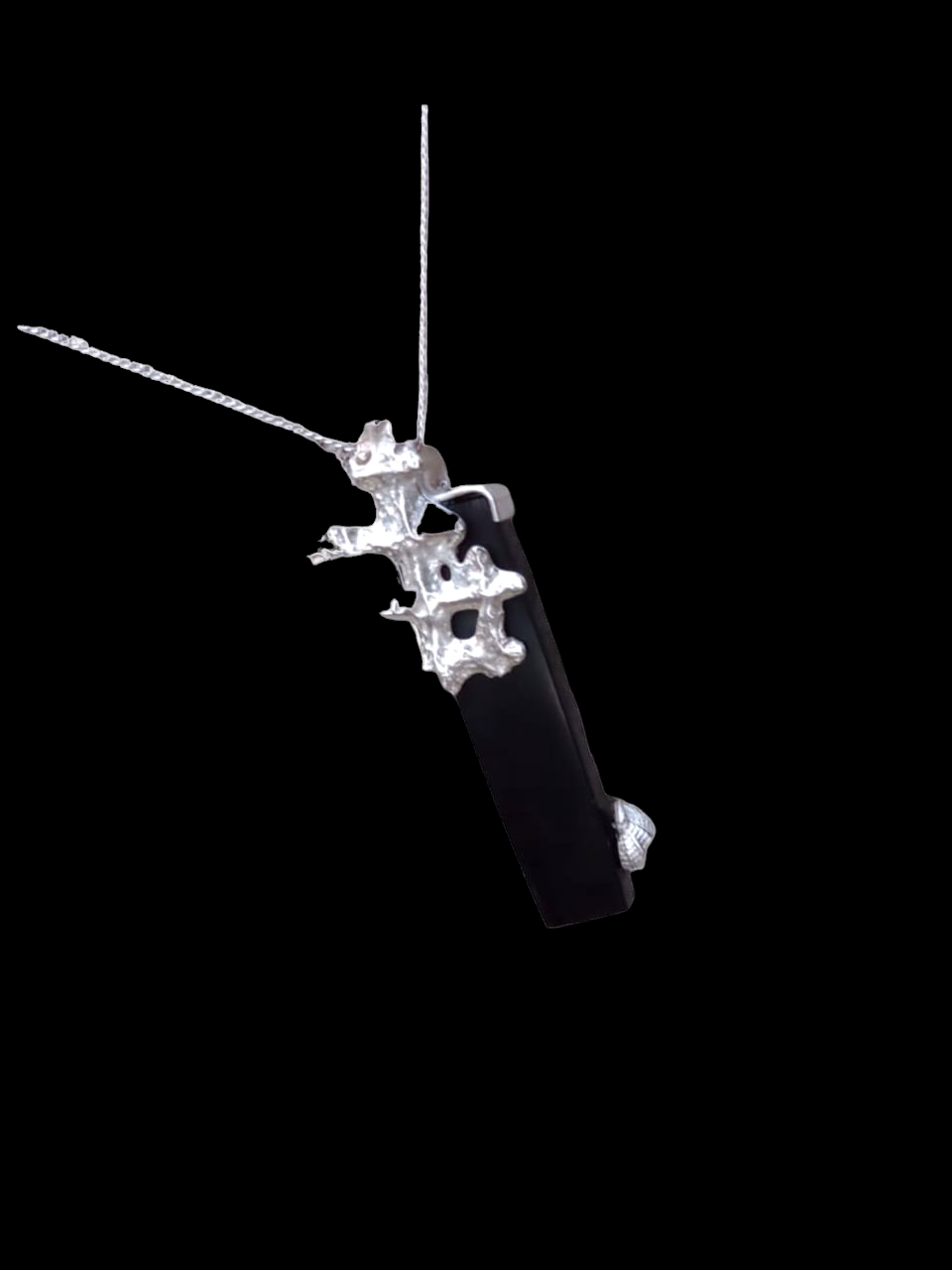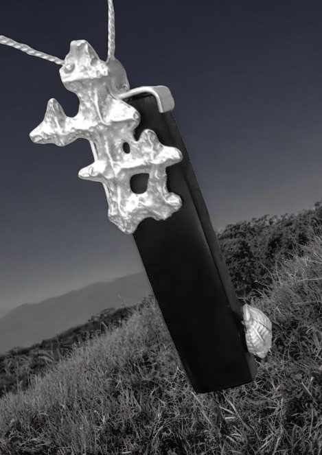 Colgante de èbano, de 5cm de lago, plata 925, hecho a la cera perdida, con cadena de plata, pieza única, se entrega con certificado de autenticidad