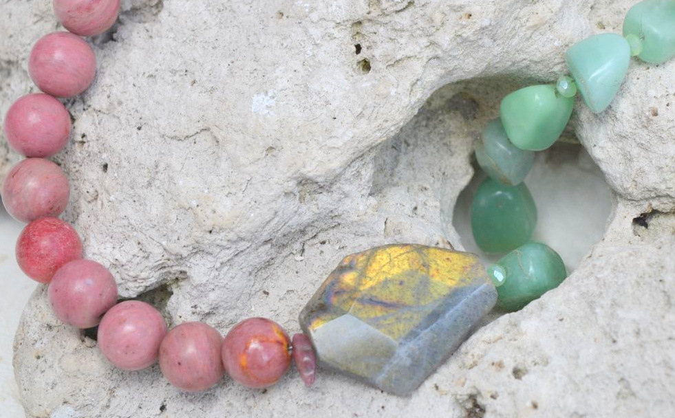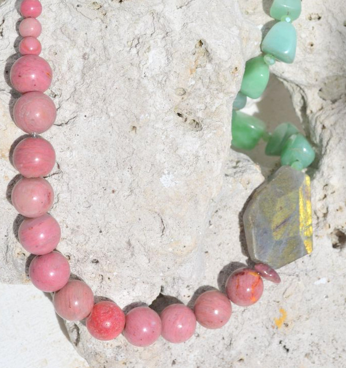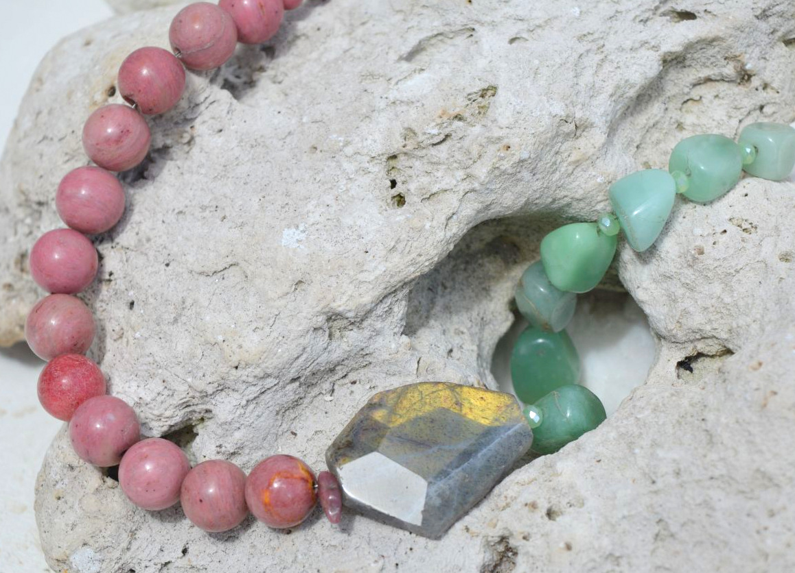 Èste collar es una potente sinergia que combina, tres piedras maravillosas, ideal para la transformación personal y empoderamiento, permitiendo sanar el corazón (rodonita) mientras se atraen nuevas oportunidades (cuarzo verde) bajo un manto de protección y claridad mental (labradorita).